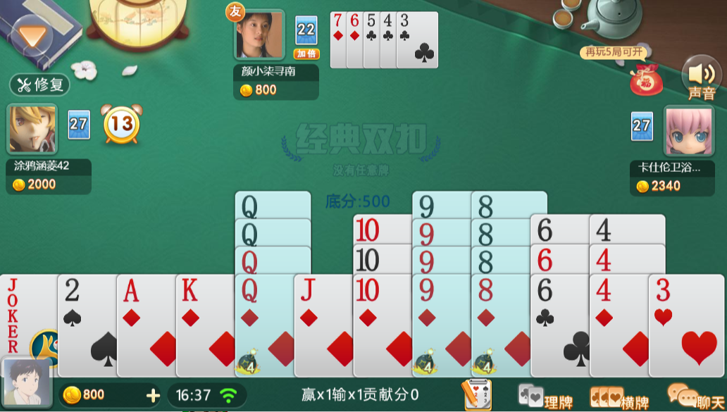 新手往往只顾自己出完牌,忽略队友。双扣绝非单人游戏,你的一次“不配合”可能让对方轻松突破。